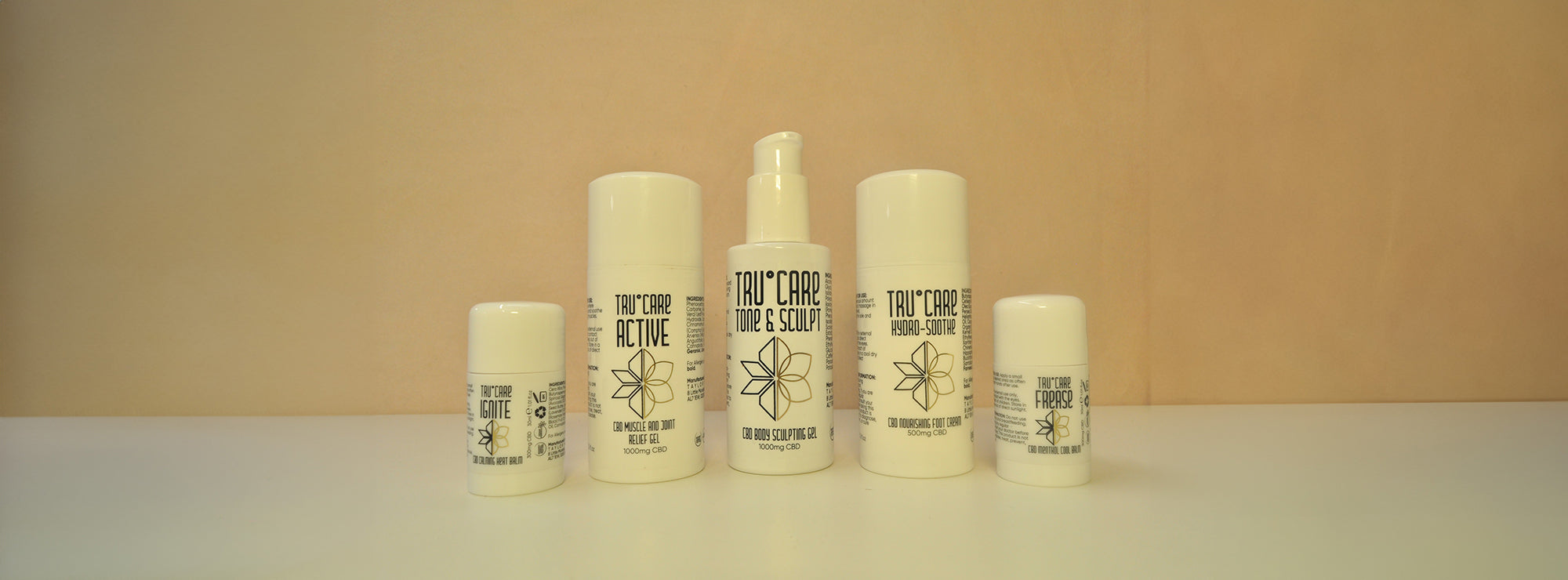 The Tru°Care Complete Bundle includes all available products listed on our site at a discount price! To get the best deal on our full range of health and wellness products and experience all that CBD we offer, this is your best bet. Including Ignite, Frease, Hydro Soothe, Active, and Tone & Sculpt, this bundle gives you the ability to elevate your daily self-care routine and explore the varying benefits that CBD can bring you.